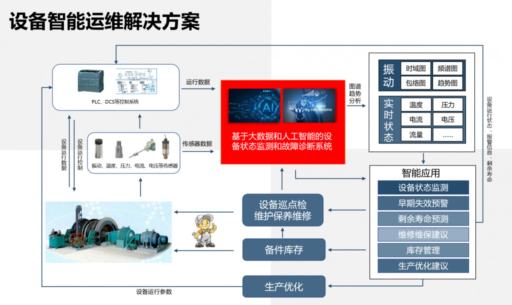 狀態(tài)監(jiān)測 系統(tǒng)系統(tǒng)采集設(shè)備控制器和傳感器的數(shù)據(jù),經(jīng)由先進網(wǎng)絡(luò)技術(shù)將數(shù)據(jù)上傳到云端或者本地服務器,運用大數(shù)據(jù)和人工智能算法對數(shù)據(jù)進行處理和分析,