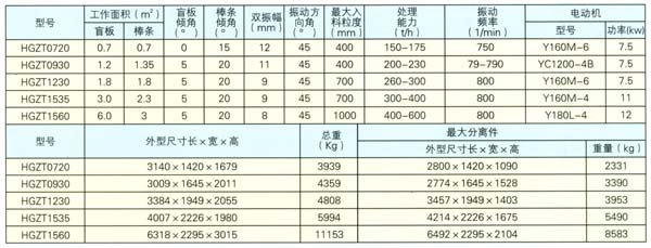二、棒條式振動給料機(jī)技術(shù)性能及參數(shù)